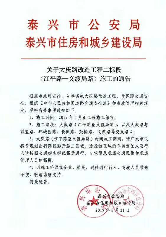我公司中标大庆路改造工程二标段(江平路-义渡局路)于2019年5月29正式开工