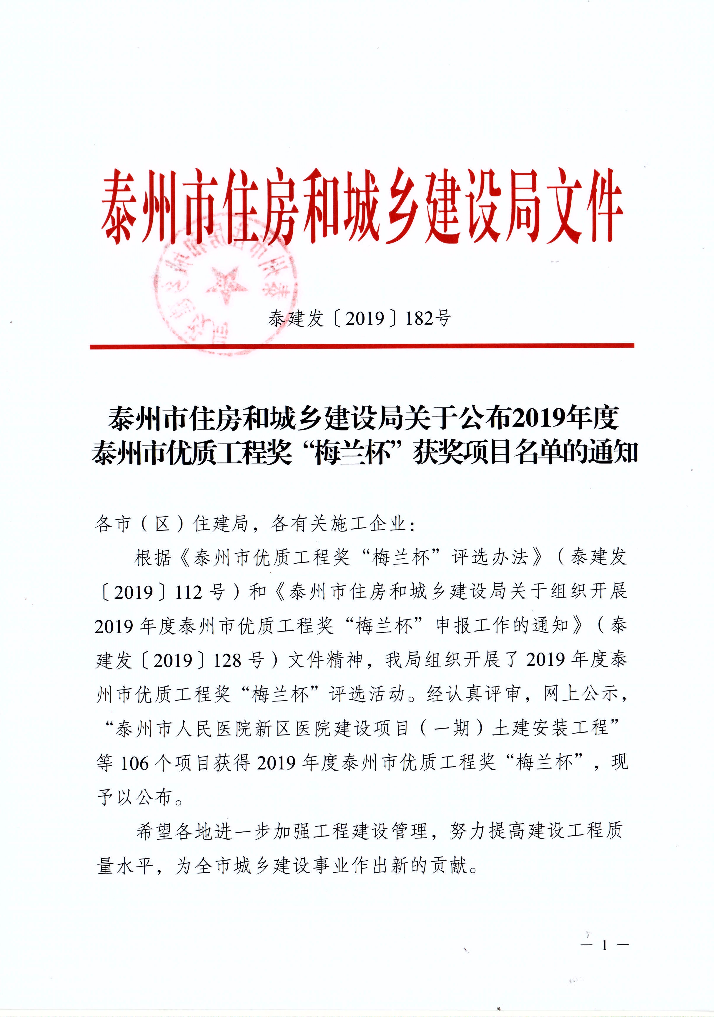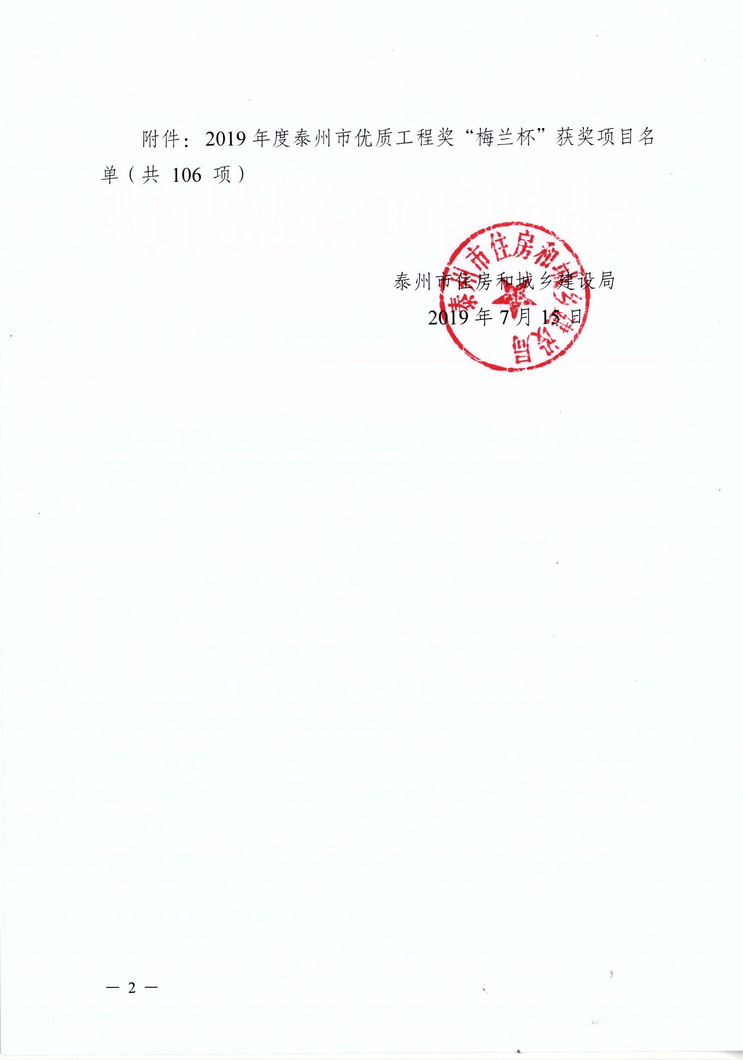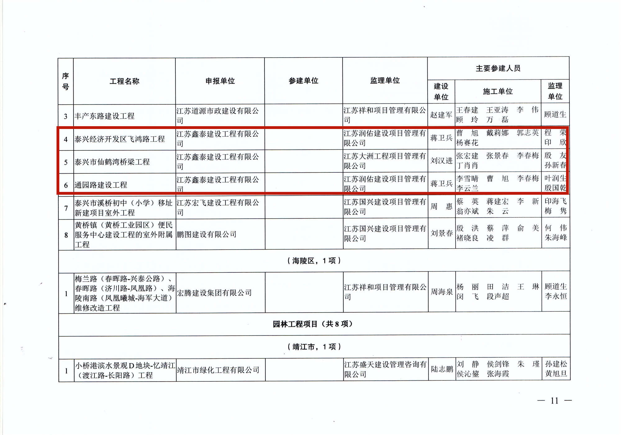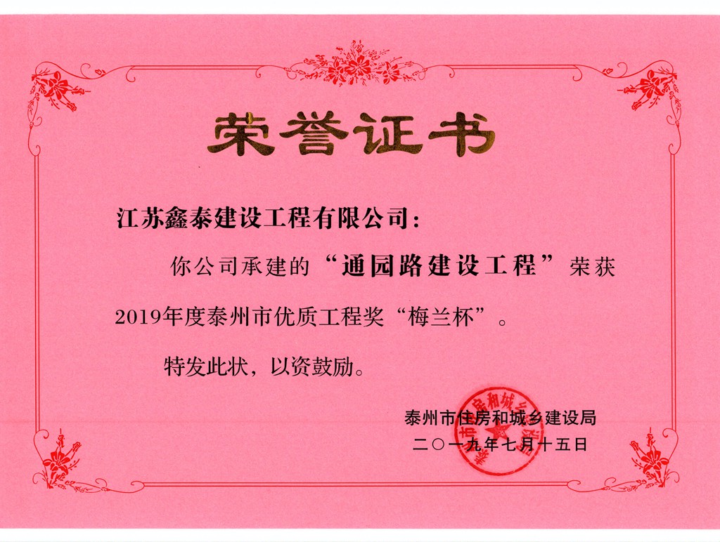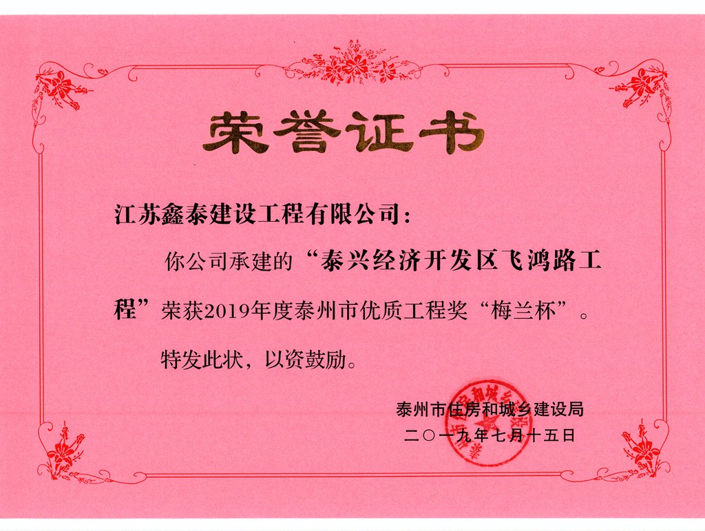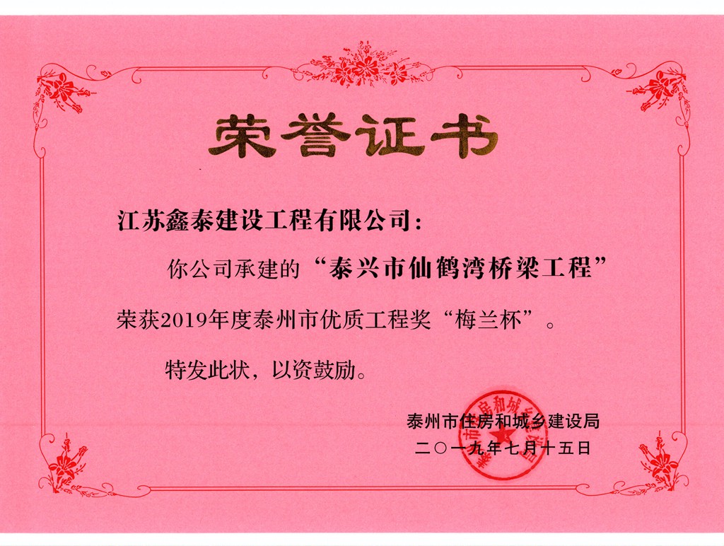 我公司承建的通园路、仙鹤湾桥梁、飞鸿路工程被评为2019年度优质工程“梅兰杯”奖