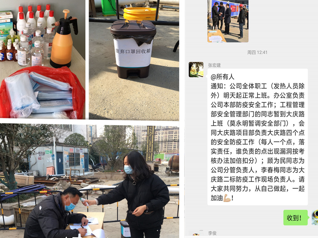 一是公司本部门房设检查点,每天两次上班时间测体温,工程车辆定点消毒;二是抽调公司四名安全管理部同志负责大庆路四个点的安全防疫工作,定点定人落实责任;二是加强值班人员管理,严格实行市防疫办规章制度,实时掌握职工动态和排查情况。