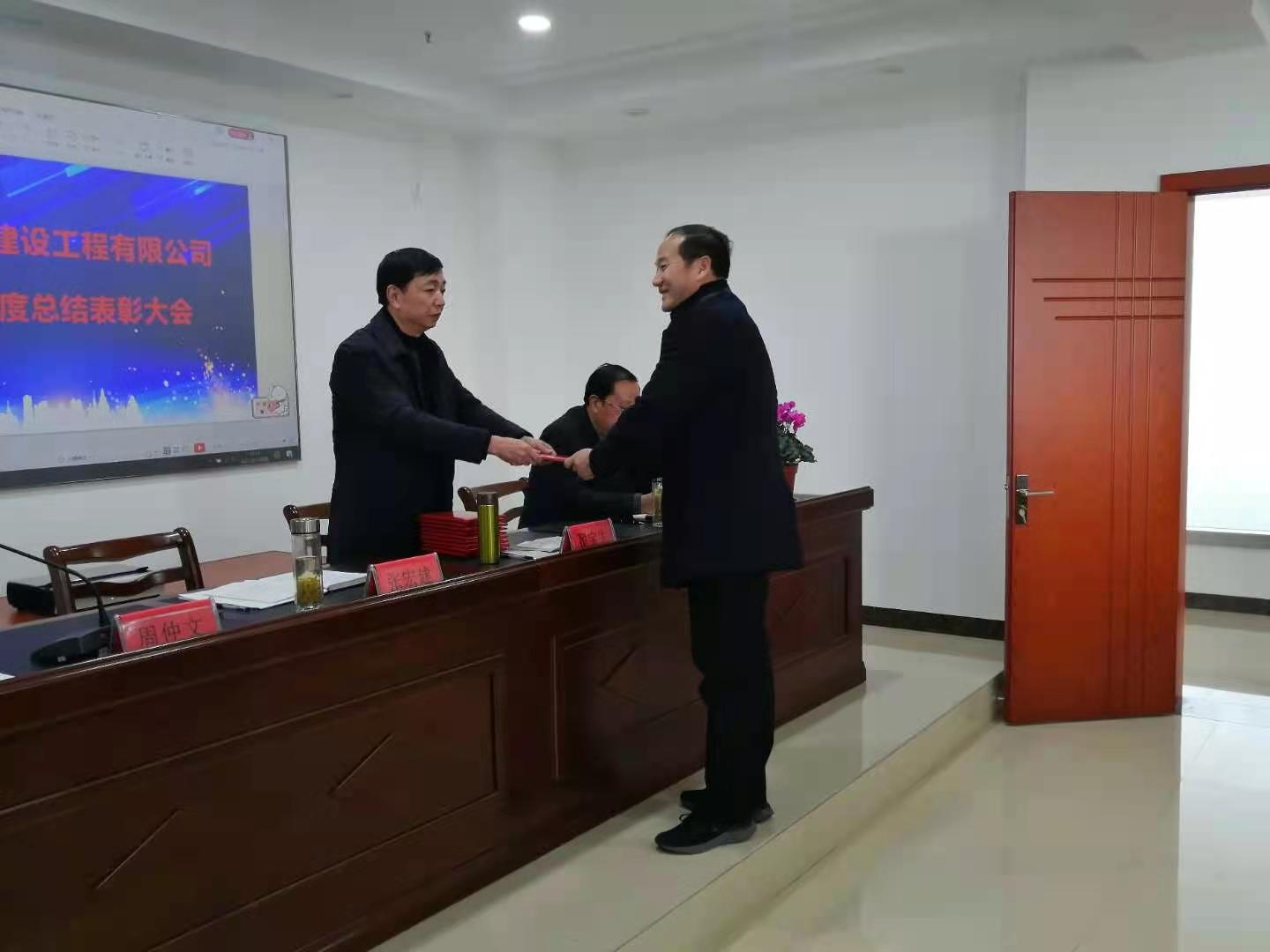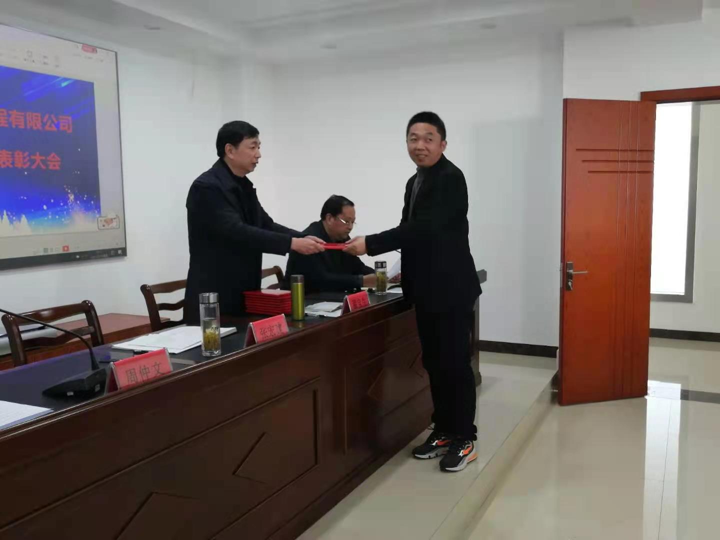 表彰大会由周仲文副书记主持,大会共分三项,第一项、由张宏建总经理发表讲话,张宏建总经理通过近两年来的工作成绩、工作中存在的问题、以及2021年的工作计划等方面做了很详细的汇报。同时也为大家分享了一些自己近些年来的工作经验和感触,鼓励大家在新的一年里能够不怕吃苦,团结一致,努力奋斗,再创辉煌。第二项、由顾为民副总经理宣读2020年度表彰决定。同时,由董事长为获奖者颁发荣誉证书并与获奖同志们合影留念。第三项、由翟宝生董事长发表讲话,翟宝生董事长针对公司持久性和多元化的经营发展,坚持一专多能发表了重要的指导意见。