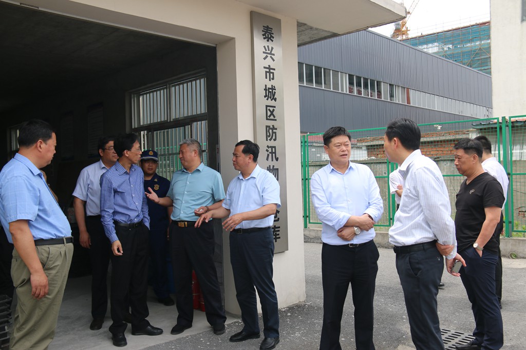 泰兴市市政府领导一行督查城市防汛物资仓库