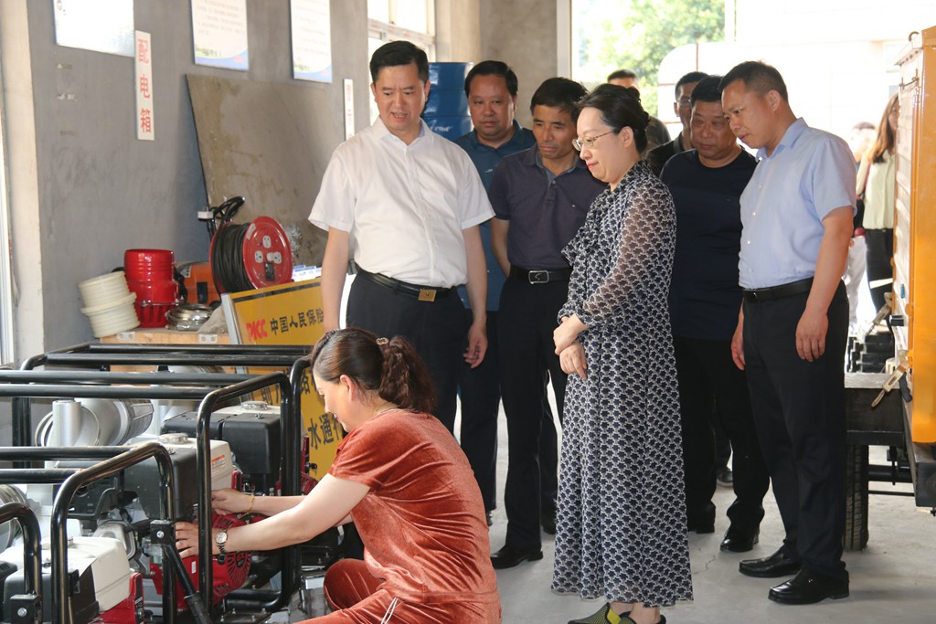 2022年5月25日下午5时,泰兴市市委副书记张红霞带领相关部门、街道负责人一行来到我公司检查城区的防汛物资仓库。