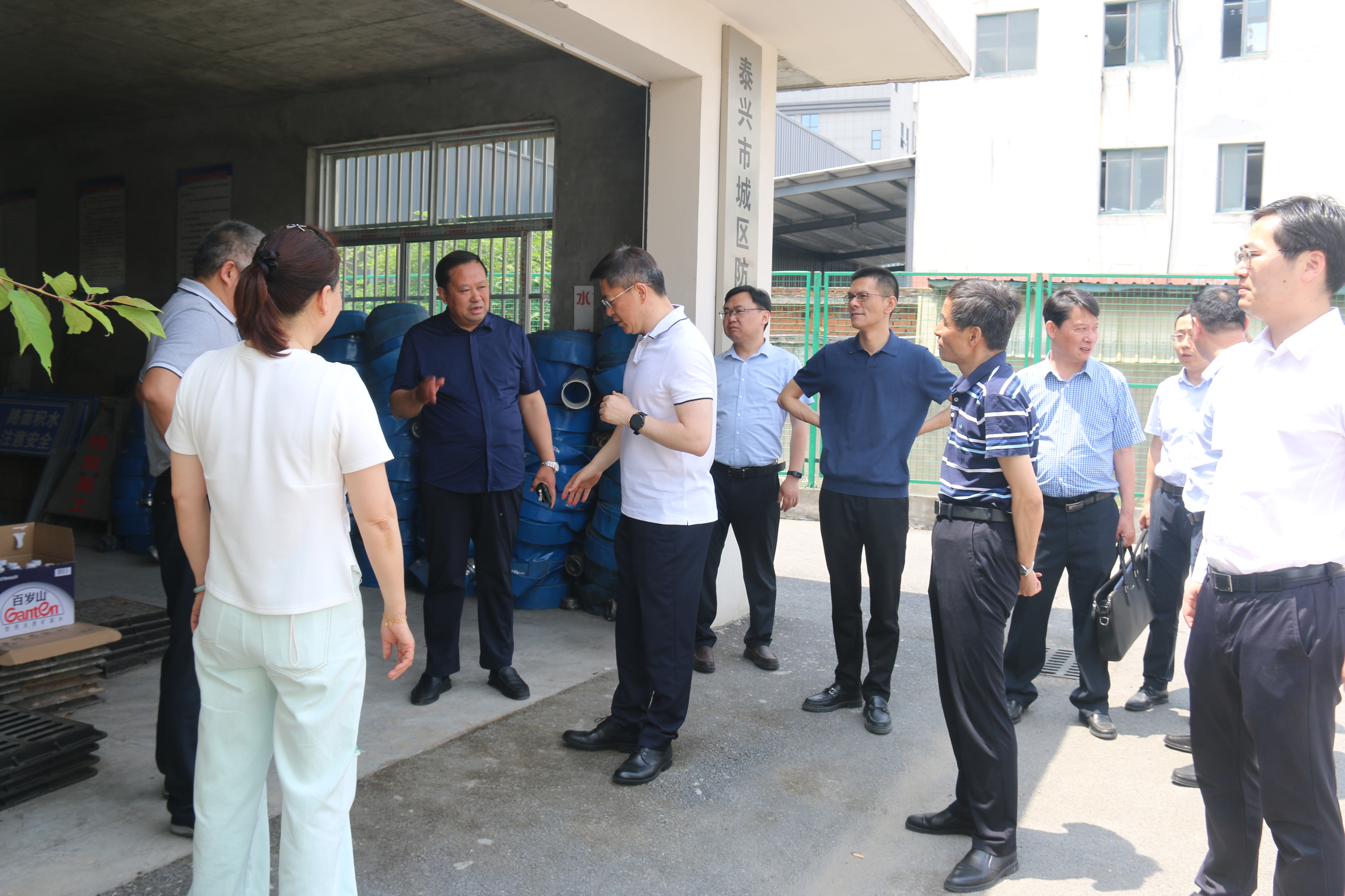 泰兴市市委领导一行督查城市防汛物资仓库