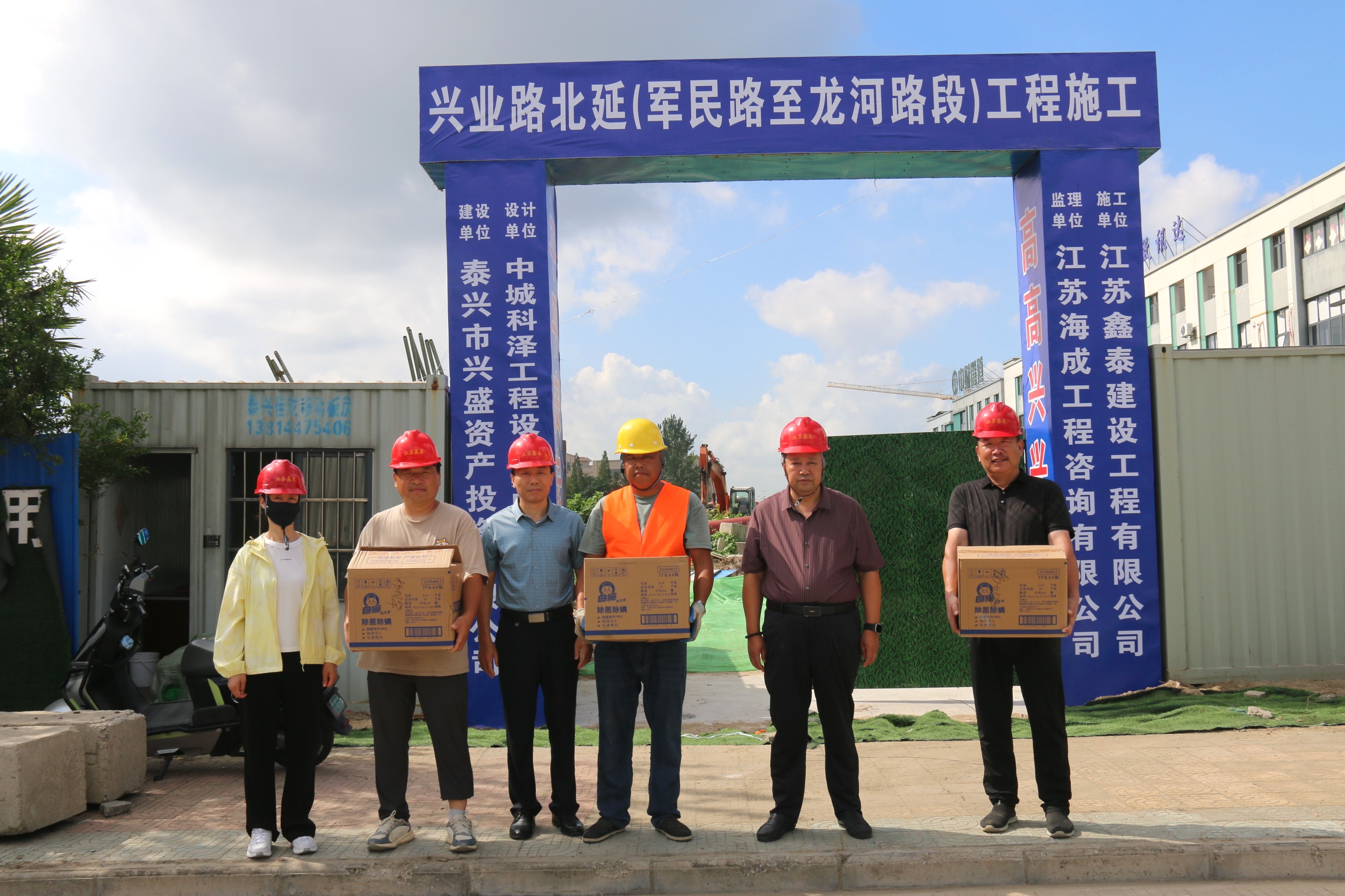 7月23日上午,由公司工会主席顾为民、支部副书记书记周仲文、安全总监李春梅参加的高温慰问小组分赴公司各项目工地,为烈日下辛勤工作的一线工人送去防暑降温物资,并送上公司的亲切关怀和问候。